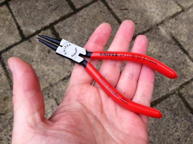 Now, I’ve always had a Park Tools set in my toolbox, but that was for the old self extracting bolts on Shimano and other branded cranks, but they were 2.2mm in diameter and that’s way too big for the EBB. So if anything, spending today researching circlip pliers has taught me a thing or two.
