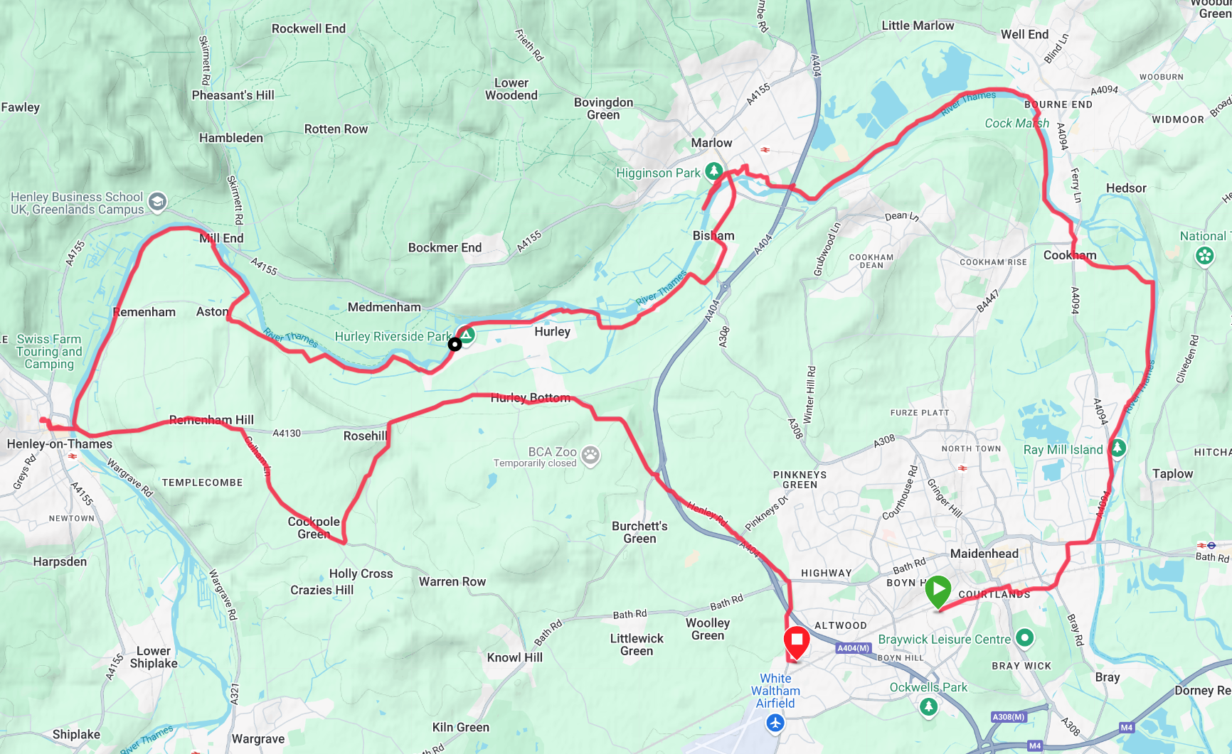 - Run up the big hill heading East out of Henley, then take a right (South) at the top and head down towards the A4 (there are plenty of routes if you plan ahead)
