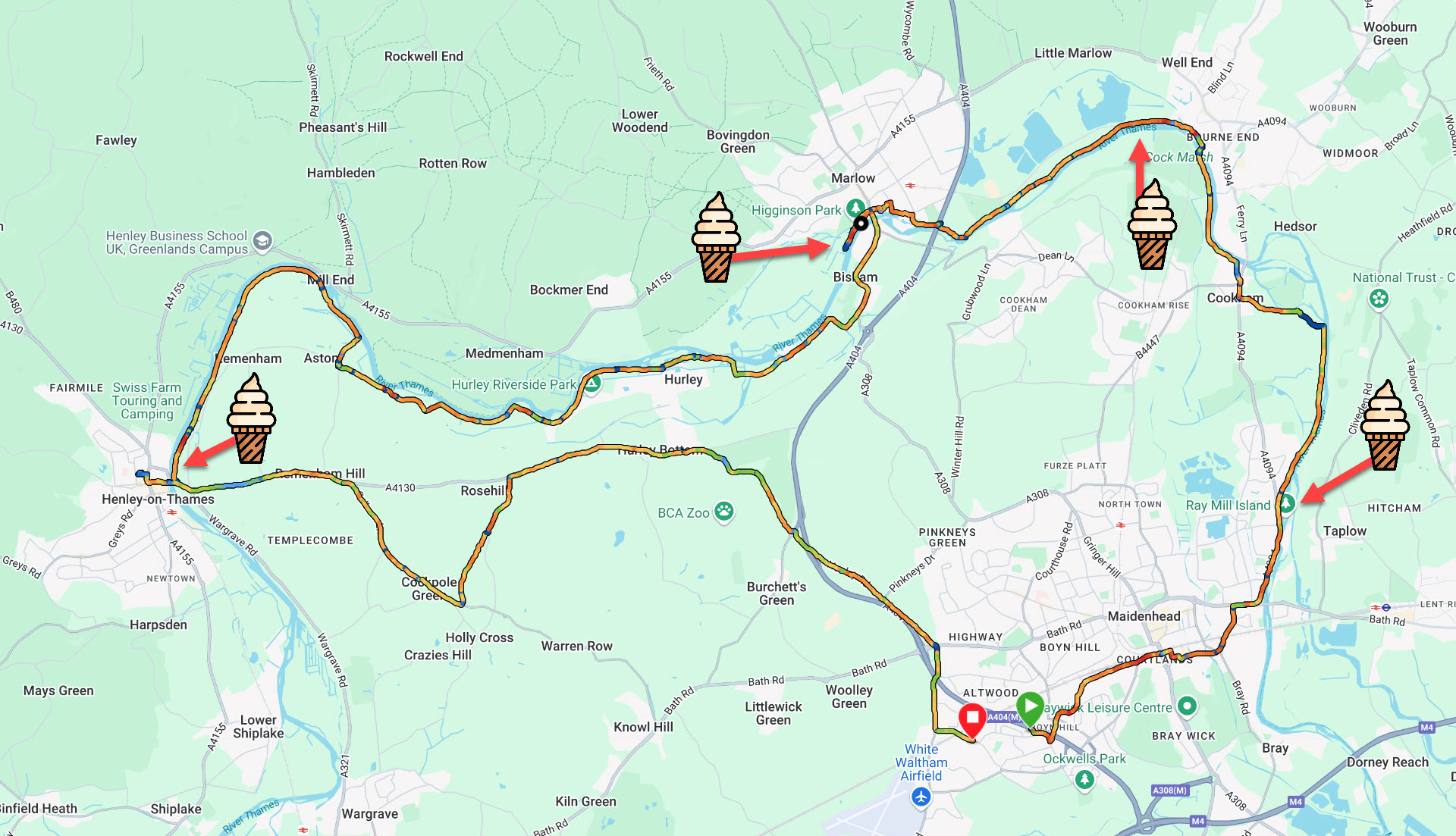 - Run up the big hill heading East out of Henley, then take a right (South) at the top and head down towards the A4 (there are plenty of routes on and off road if you plan ahead)