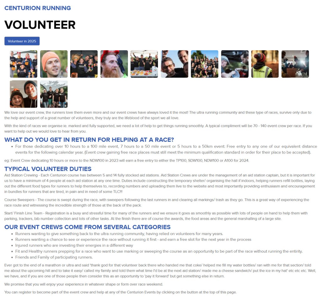 If you want to volunteer for Centurion, even if you’re not a runner, then you can do so from the Centurion Running Volunteer page.